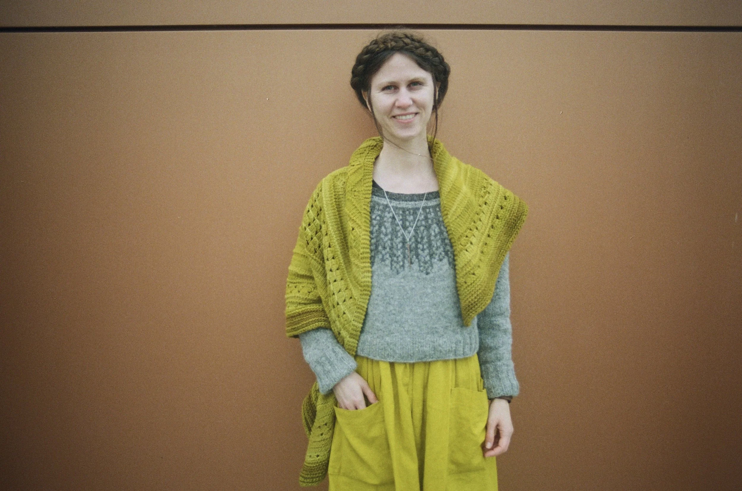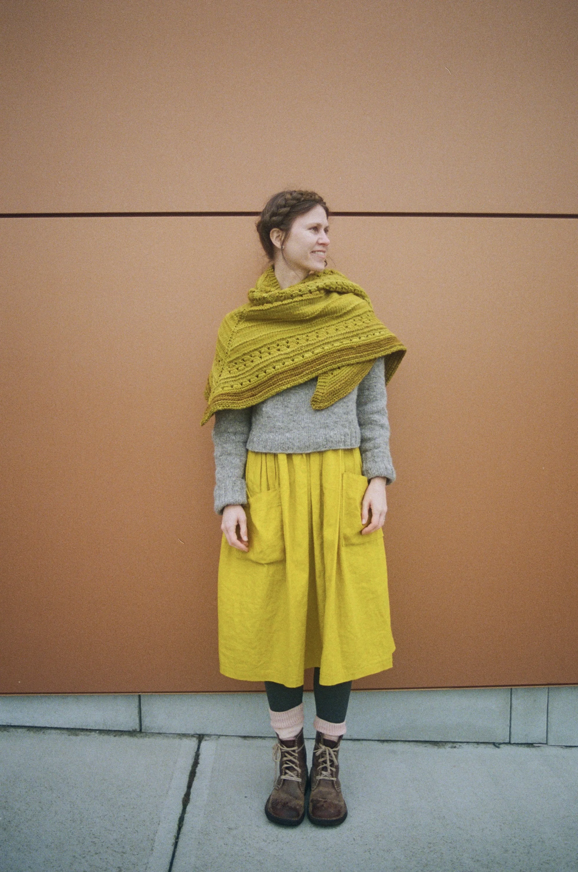 As soon as I finished my first Dissent sample, I knew I wanted a pullover that had a really different feel to it. Here’s a pullover hack to use with the pattern. I made mine over-sized and cropped to wear with dresses and I love how it came out. The yarn is Daughter of a Shepherd Ram Jam that I bought at A Verb for Keeping Warm in Oakland.
