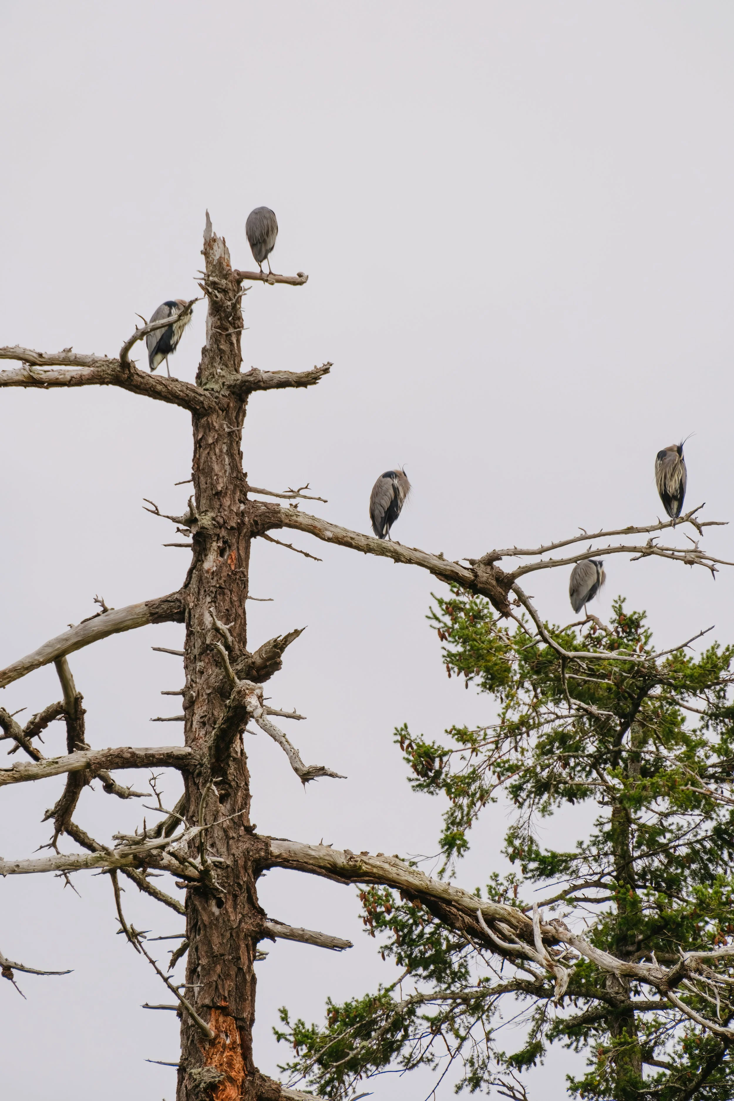 Herons in trees are always very cool to see, but I think this one was annoyed by a dog being walked nearby. A few herons took off out of the trees at that point, but most of them just fluffed themselves up and stayed put.