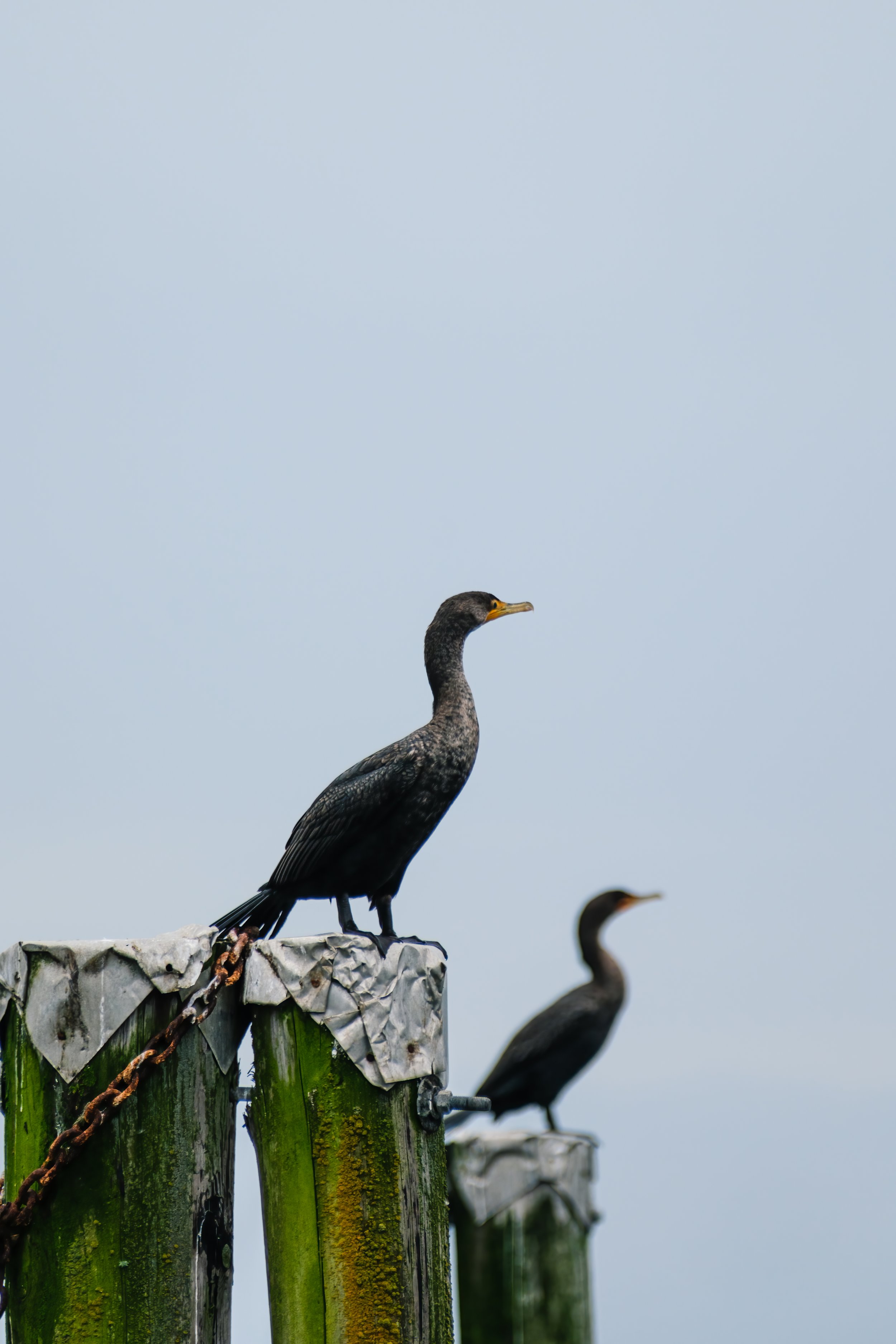 Double crested cormorants seem to love perching on these cool, textured posts. Thanks for the excellent lichen and rusted chain accessory for my pictures!