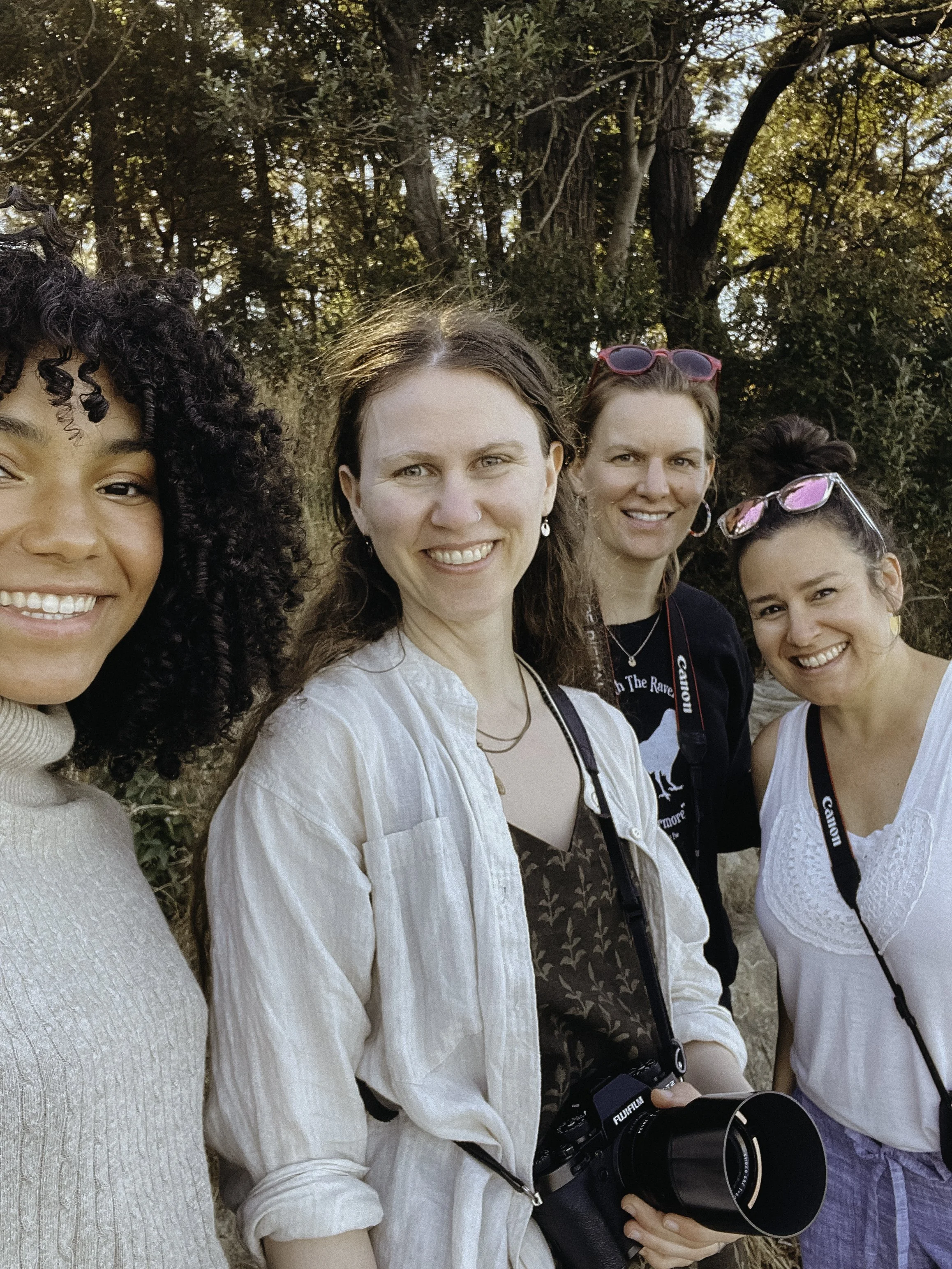 Kiya, Andrea, Catherine, and Mandy smiling in a group selfie.