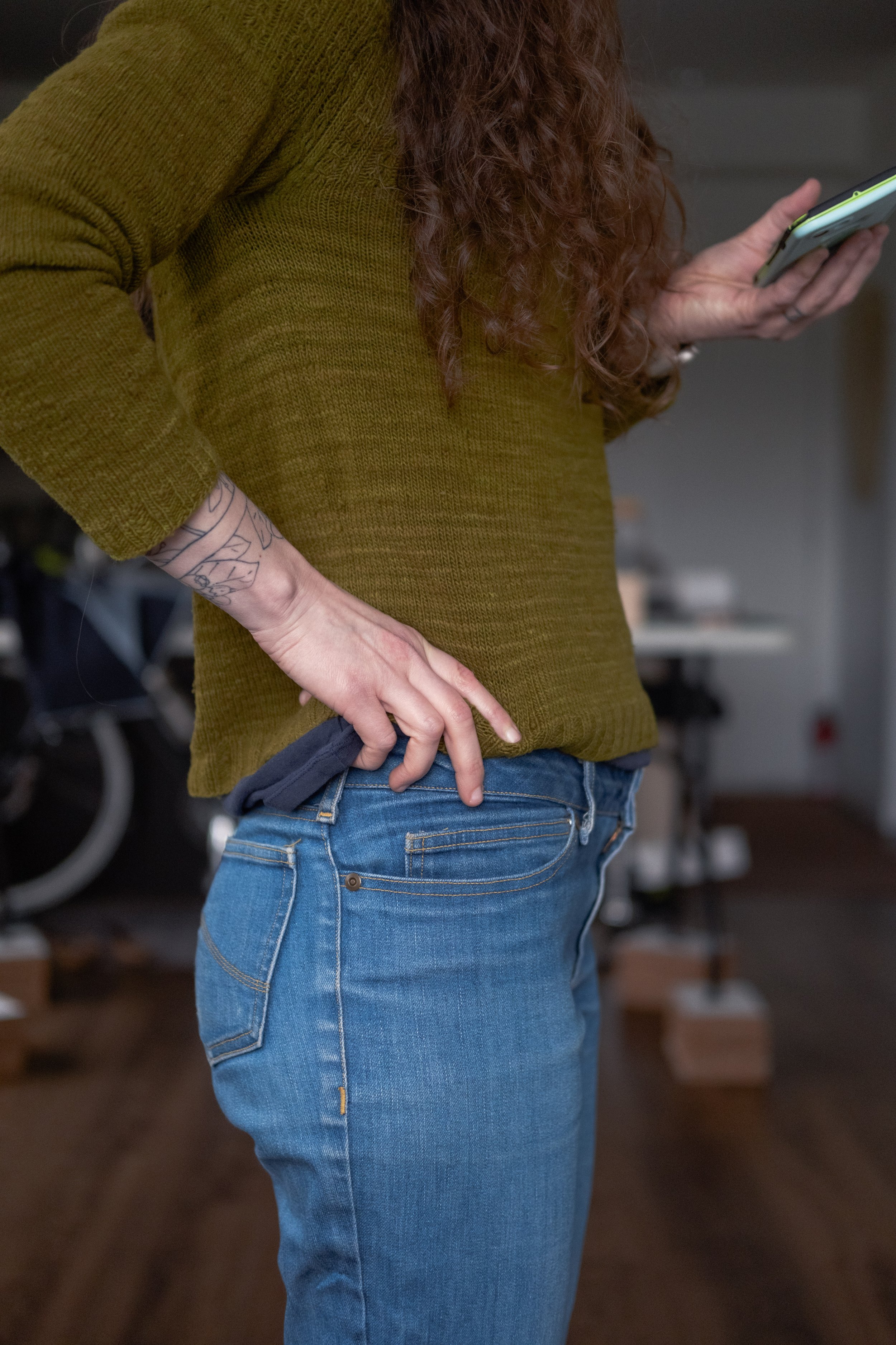 The description for the Claryville Jeans by Workroom Social says that they’re designed for folks with a “larger hip-to-waist ratio”, which is a very precise description of my shape. My fit struggle with RTW pants has always been that enormous, even cavernous gap at the back waistband on any pair that fits around my hips. Normally when I make pants, I’m grading between like 8 sizes or something — 2 at the waist and 14 at the hips or some ridiculous thing.