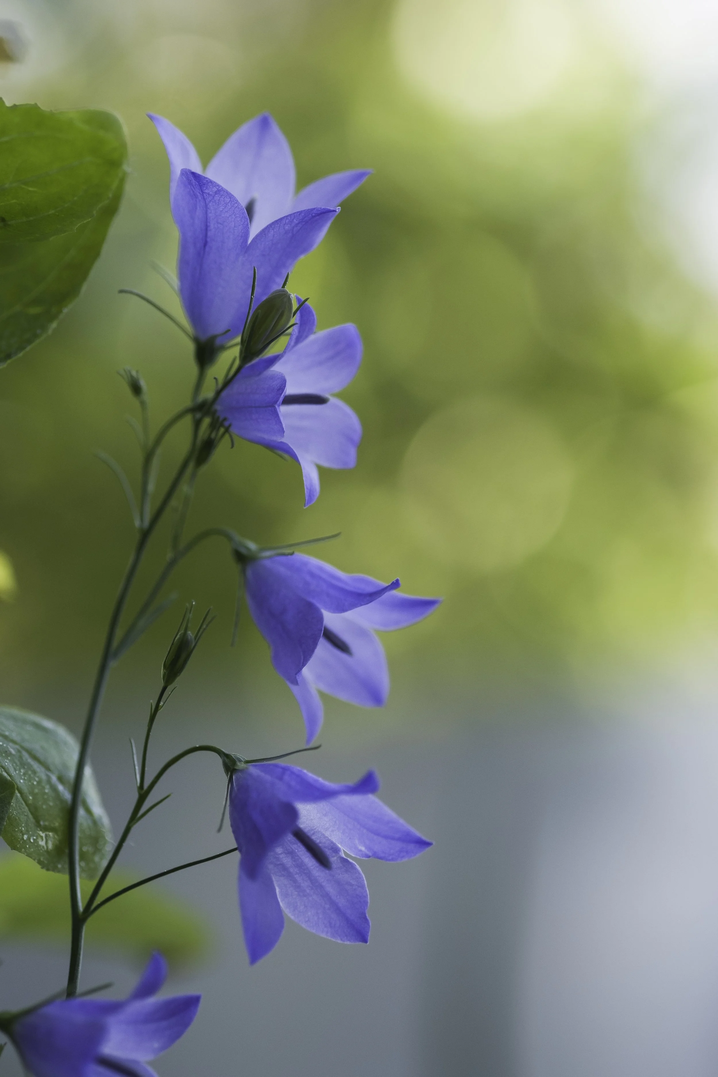 Delicate periwinkle purple harebell flowers are just dangling off slender green stems.